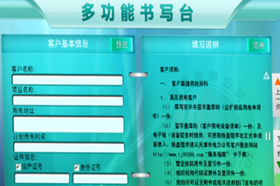 客戶自助區放置自助繳費終端,提供自助查詢、現金繳費、銀行卡繳費、發票/收據打印、卡表購電等功能,放置自助營業終端,提供業務辦理、業務查詢、證件掃描、數字簽名、證件補登、文件打印、視頻通訊等功能。