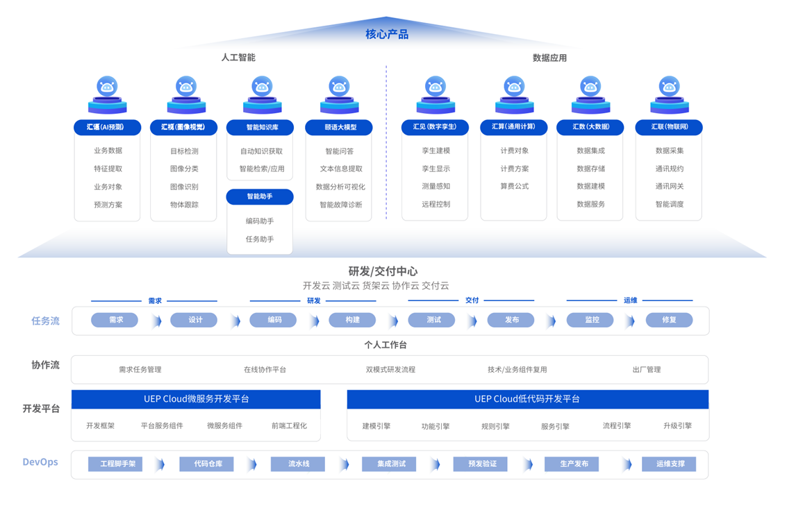 基于任務流、協作流以及DevOps思想,打造面向產品全生命周期的數字化研發平臺,實現研發運維一體化協同,加快工程交付能力,為客戶提供優質的解決方案,進而提質增效,創造價值。